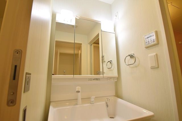 洗面台は三面鏡が付いております!